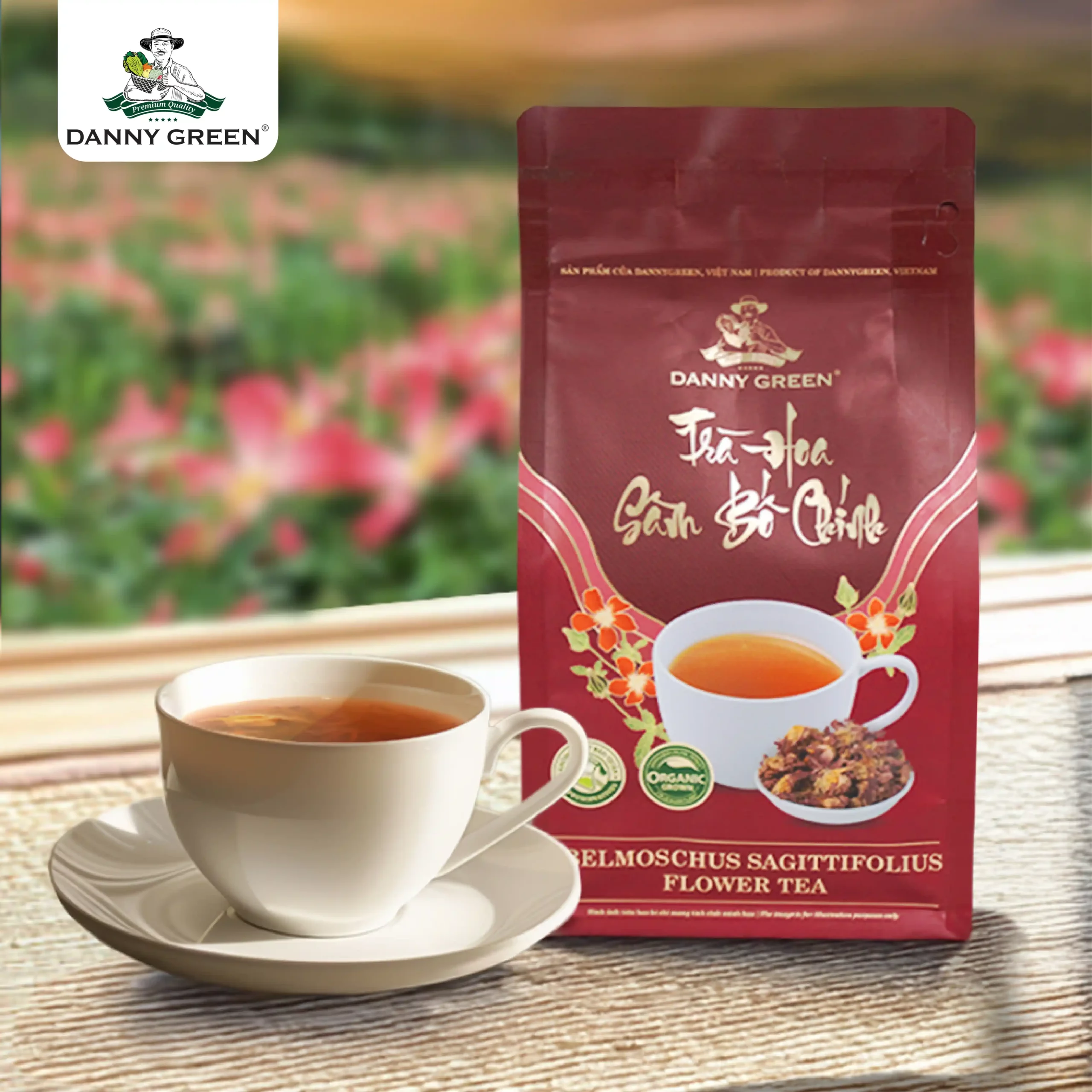 DannyGreen Abelmoschus Sagittifolius Flower Tea is made from 100% carefully selected flowers, organically grown, and free from preservatives.